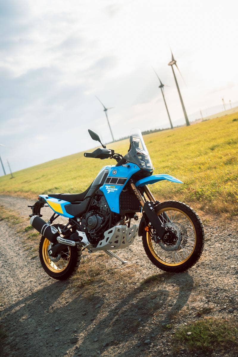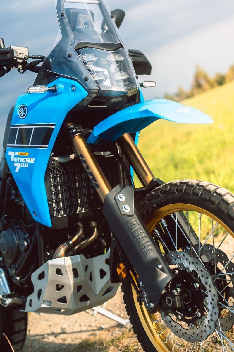 Model Ténéré 700 Rally je vybaven technologiemi vycházejícími ze závodů rallye, včetně plně nastavitelné přední vidlice KYB s dlouhým zdvihem a zesílenými trubkami, 4mm hliníkovým krytem vany, lehkými titanovými stupačkami s vroubkováním a štíhlou kapotáží a jedná se o opravdu účelný adventure motocykl. Tato verze Rally se vyznačuje jedinečným barevným schématem inspirovaným dědictvím, zlatými koly a ikonickým designem Speed Block značky Yamaha, který je doplněn vysokým předním blatníkem, jenž je synonymem pro pouštní závodníky.